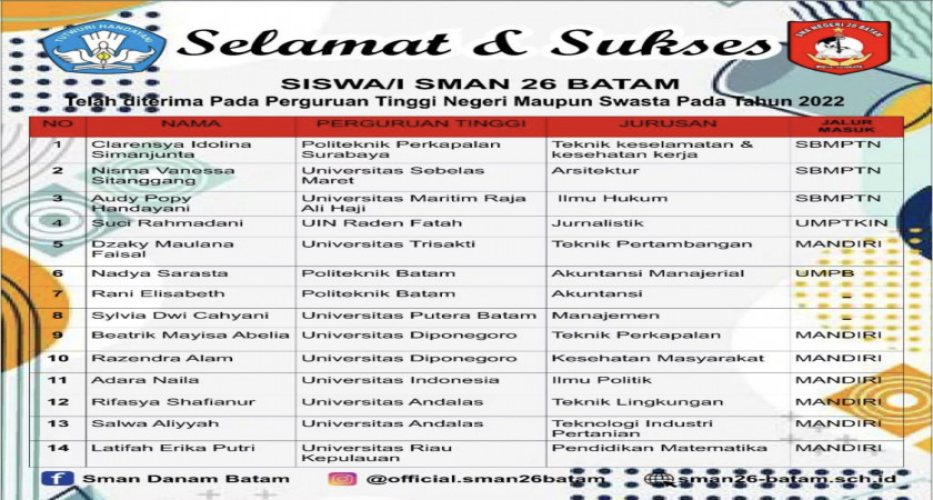 Selamat ! Inilah Siswa SMANDANAM yang Diterima Jalur UTBK SBMPTN dan Jalur Mandiri 2022